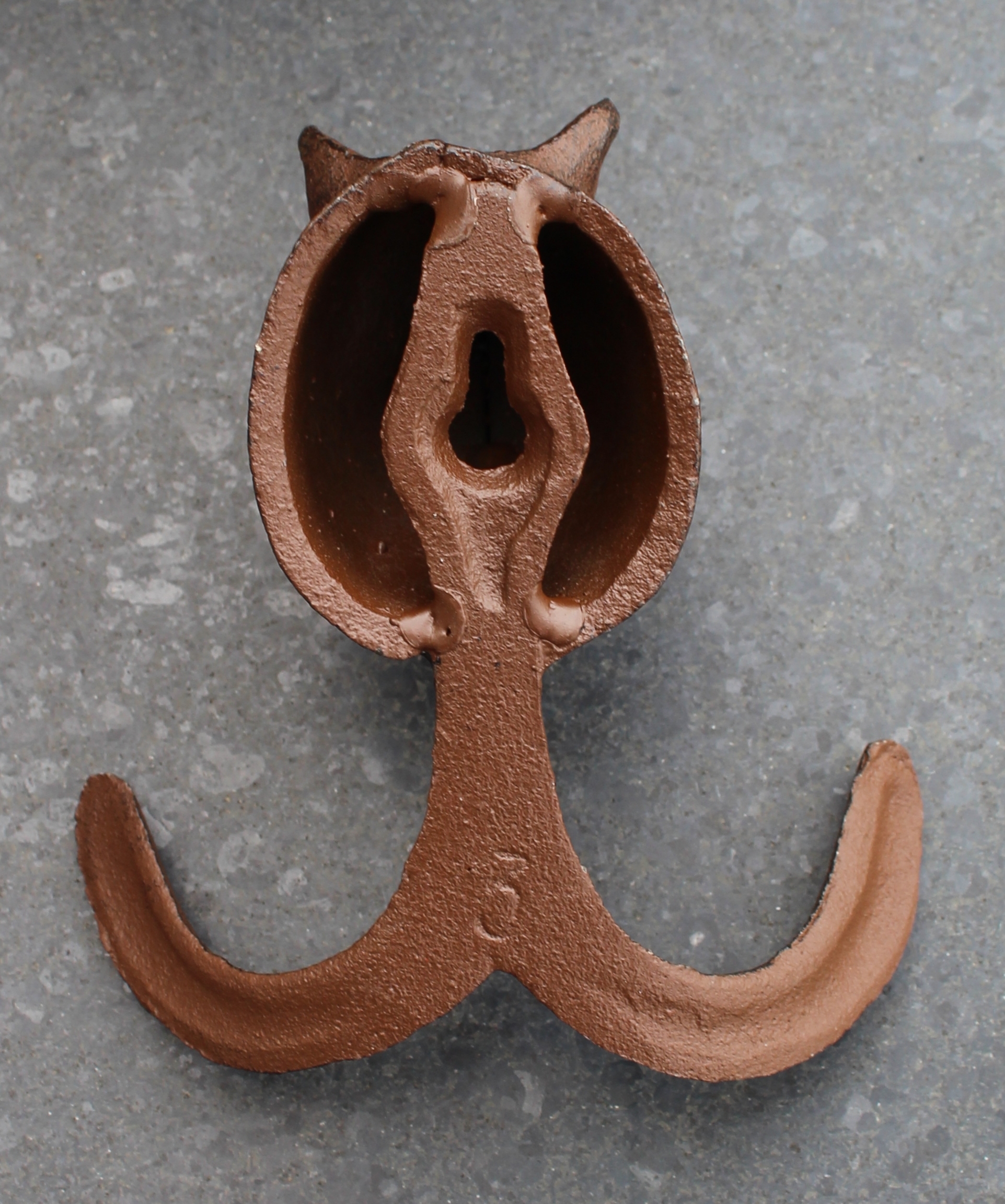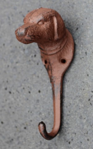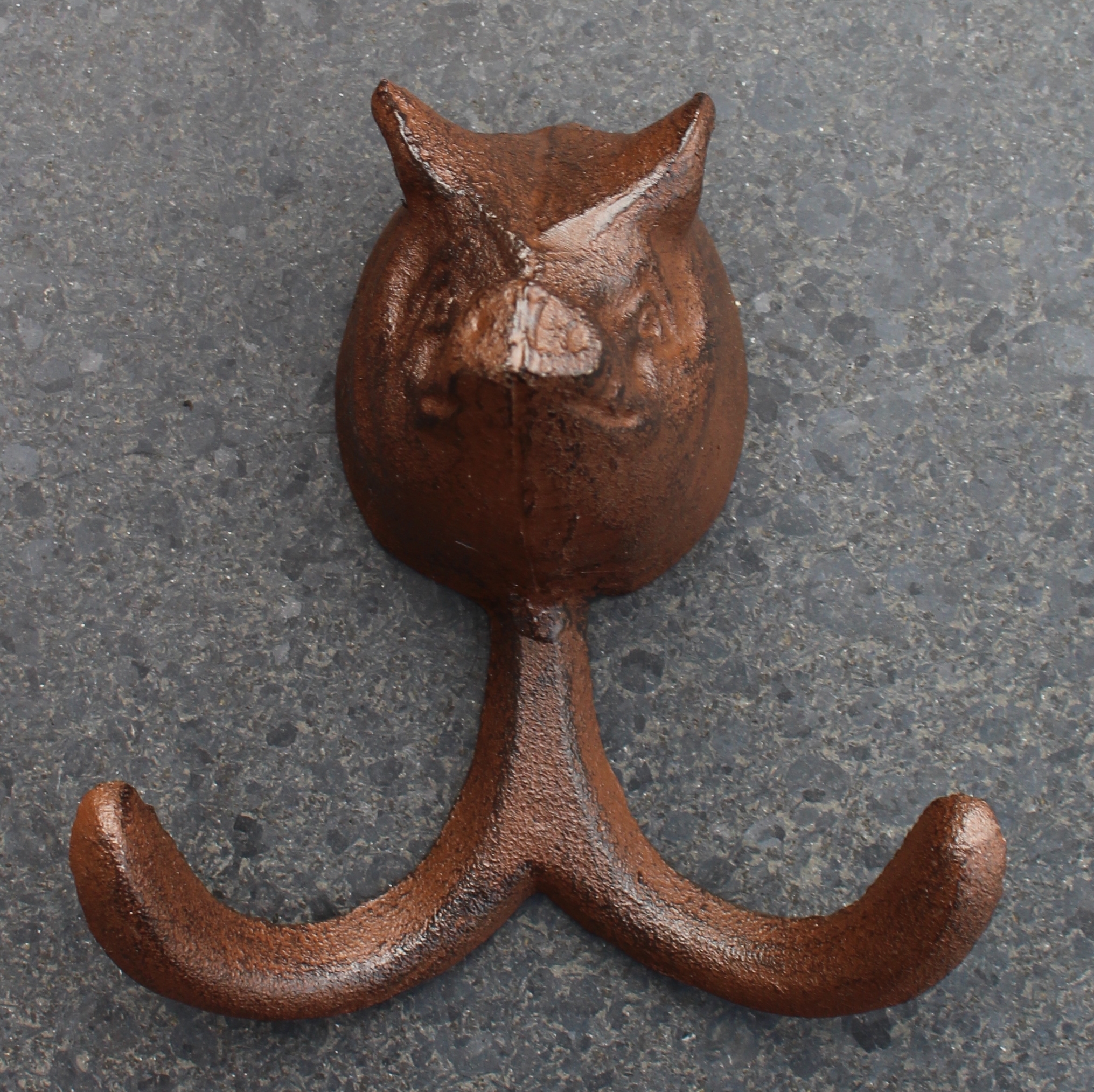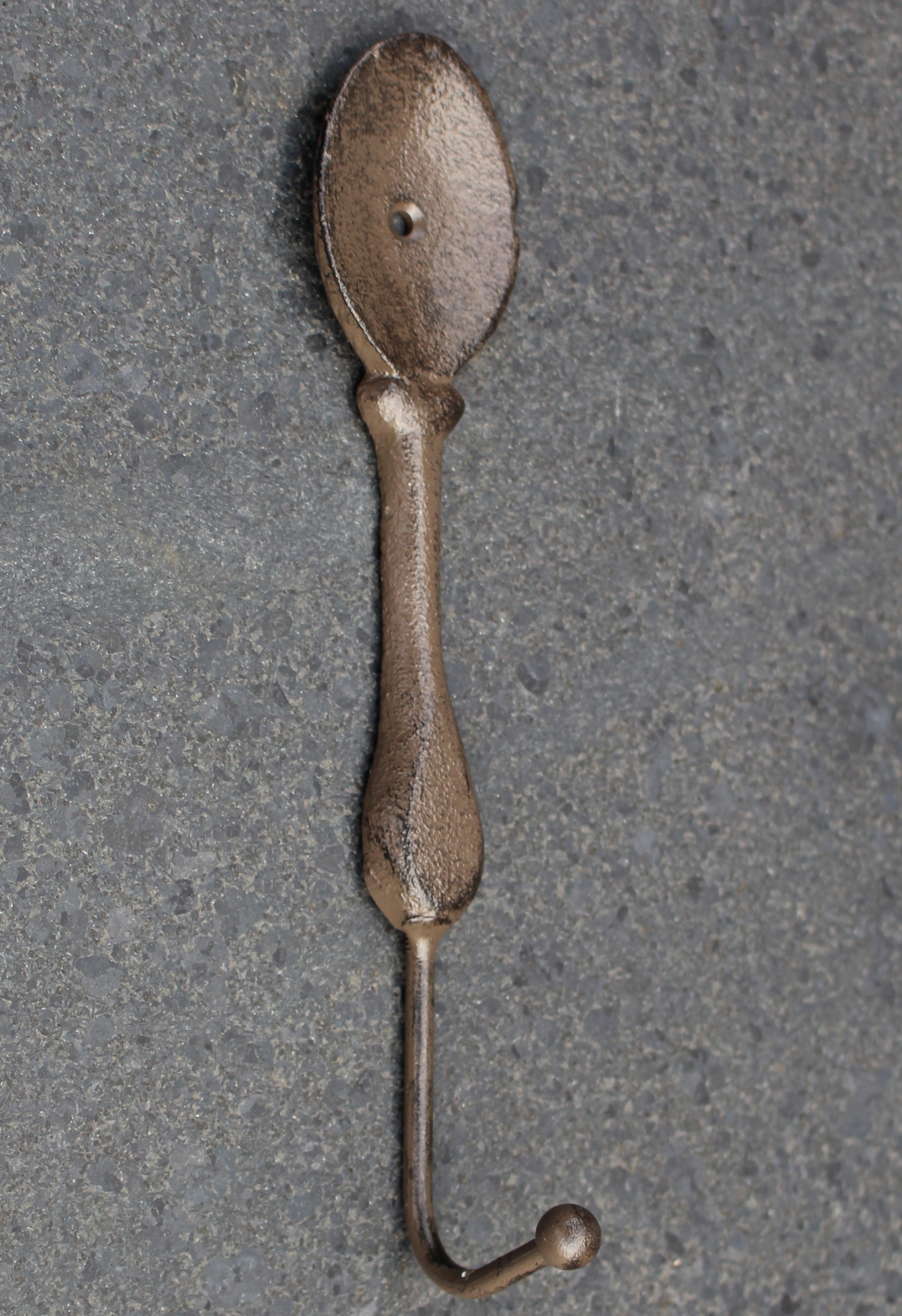 haak is van gietijzer en op de gietijzeren kop gelast in de kleur donkerbruin