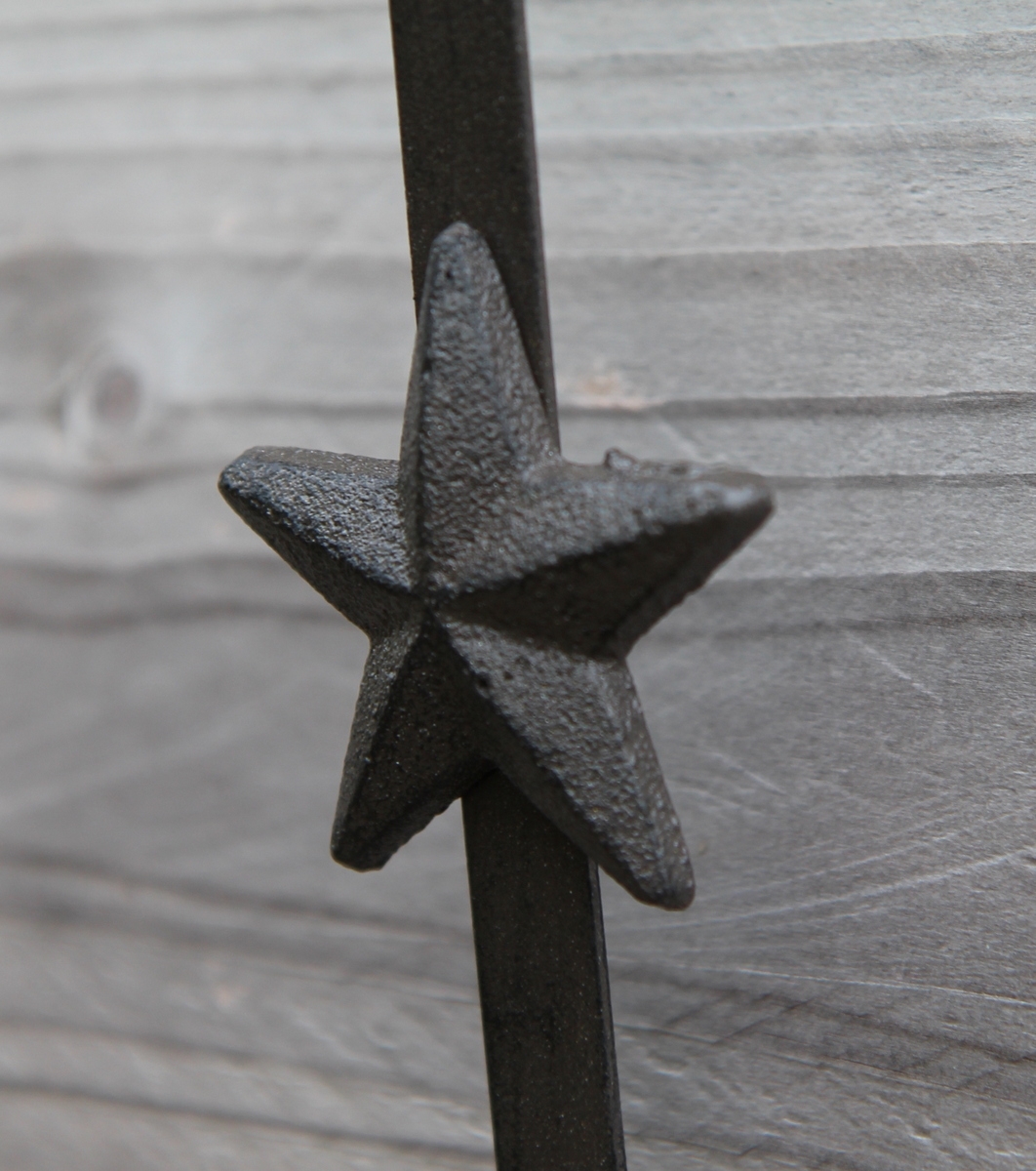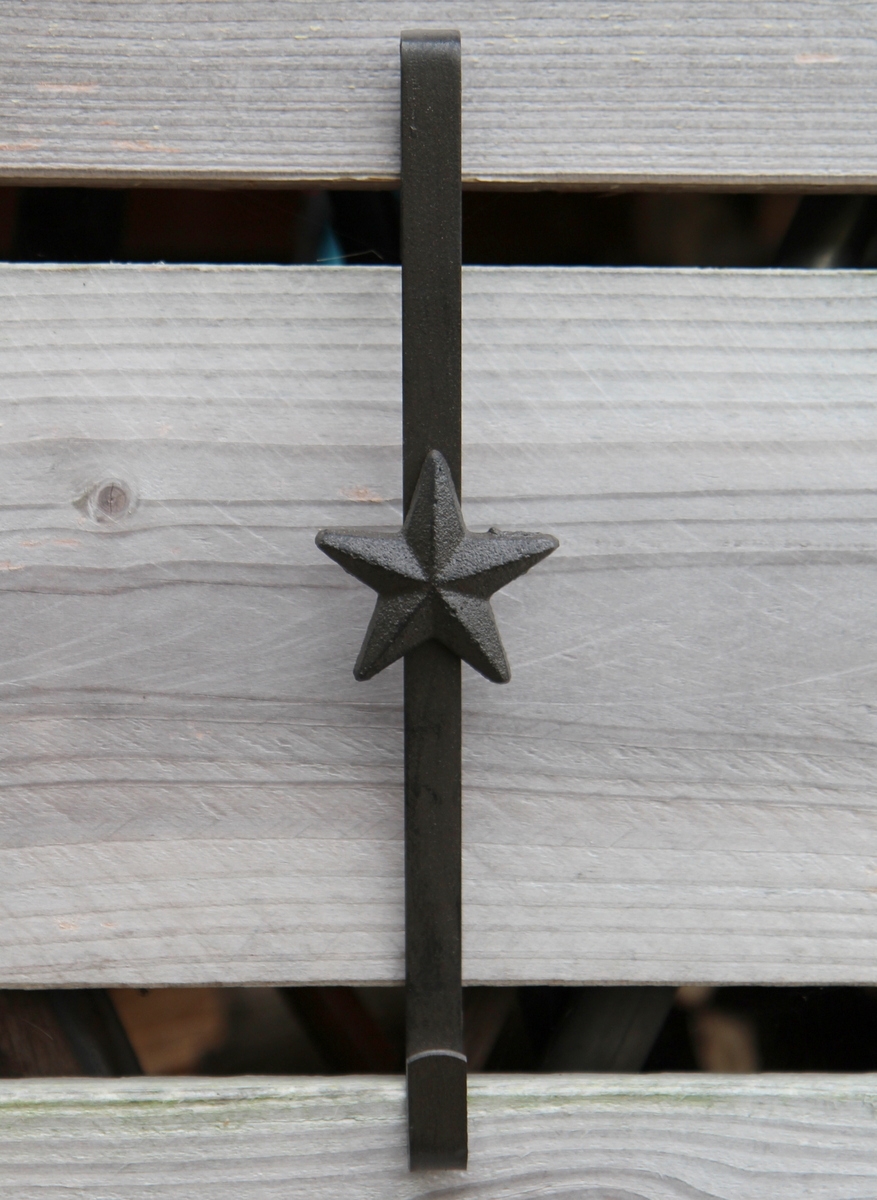van de haak. Op de rechte stang is een gietijzeren ster van gietijzer gelast.