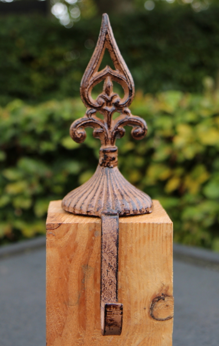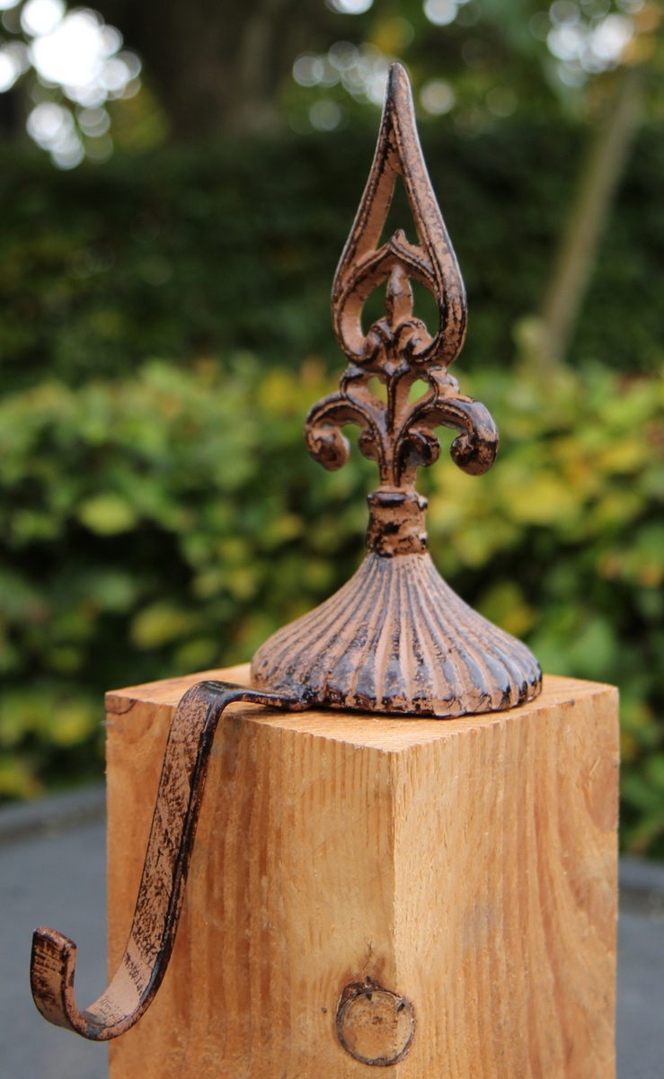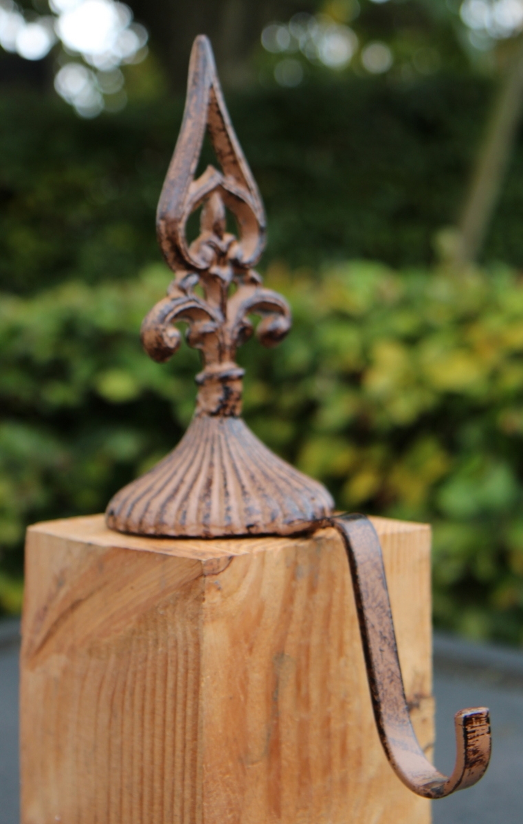 Antieke gietijzeren stocking(kerstsok) hanger met daarop een Franse Lelie. De kleur