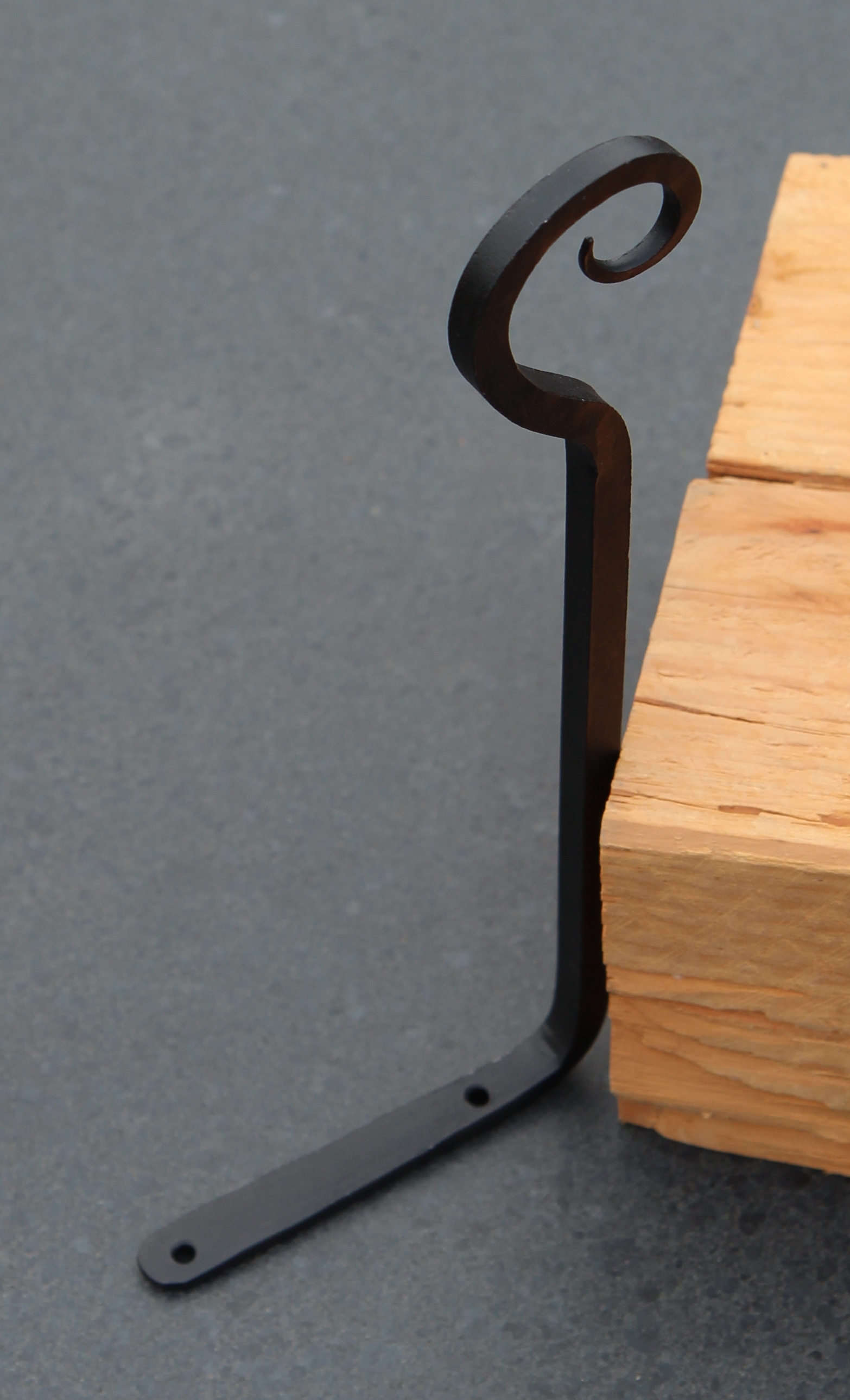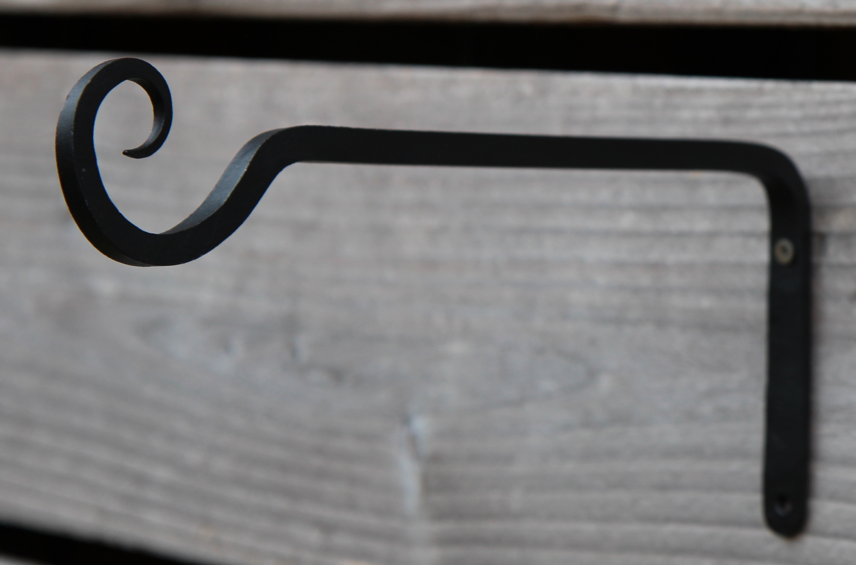 Moderne zwarte wandhaak van gietijzer. De wandhaken hebben meerdere toepassingen.
